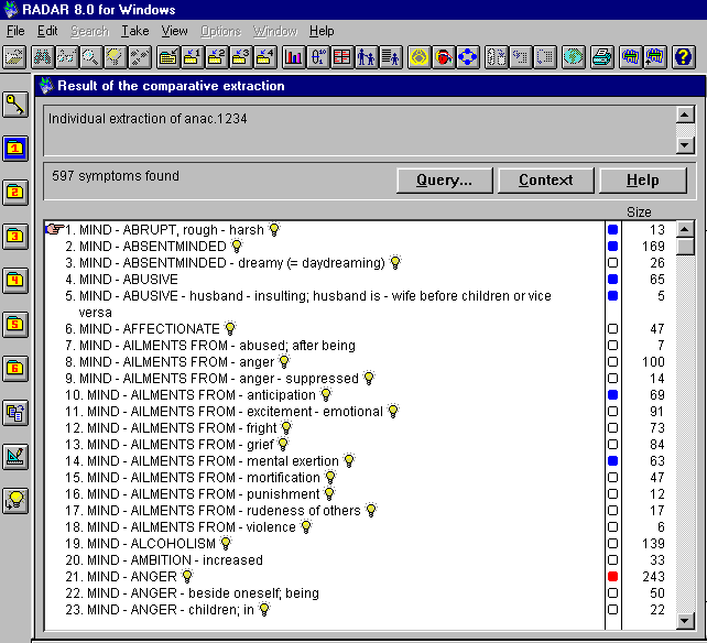 Repertory extractions are easily performed in RADAR. In the icon bar that runs down the left-hand side of the screen (see left), click the extraction button: